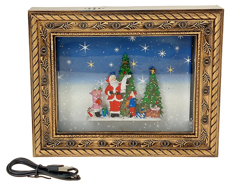 Opis | obrazek świąteczny 24x19x4,5cm ze światłem i dźwiękiem, kabel USB, z możliwością zawieszenia; BOX |
